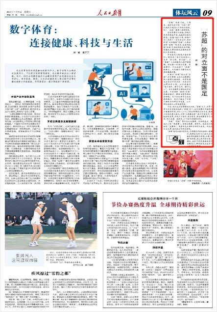 《人民日报海外版》2025年7月9日9版 版面截图原题:“苏超”的对立面不是国足(点到)