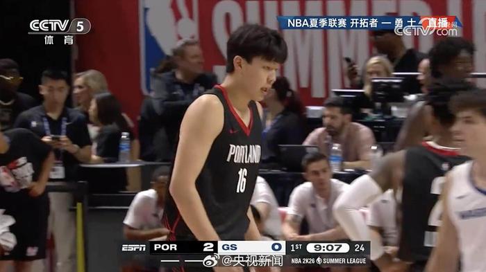 北京时间7月12日,NBA夏季联赛,开拓者对阵勇士。杨瀚森开局第一攻送出精妙击地妙传,助攻队友完成暴扣!
