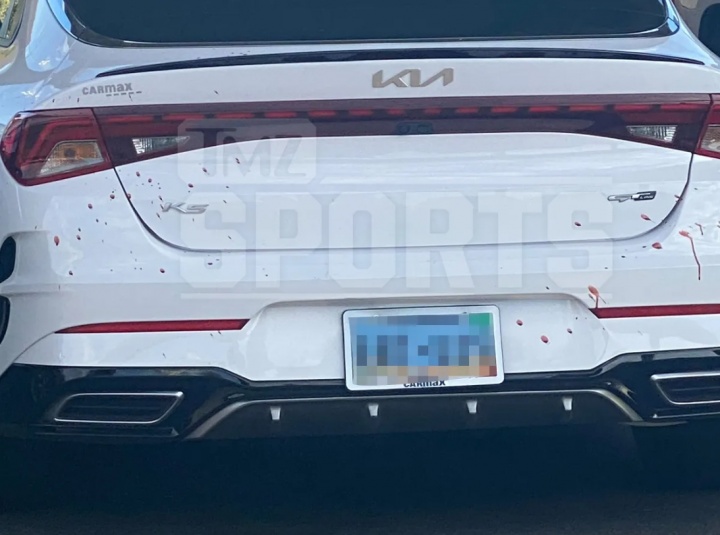 TMZ获取的现场照片显示,冲突区域附近车辆表面溅有血迹。